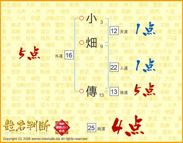 小畑傳さんの総運は25画の4点!