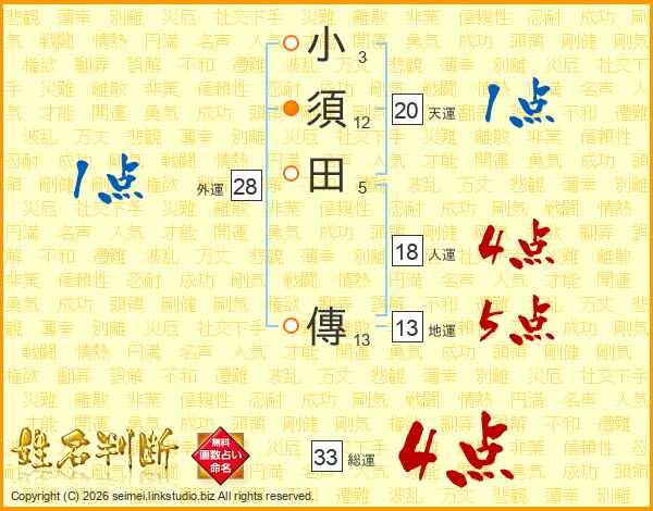 小須田傳さんの総運は33画の4点!