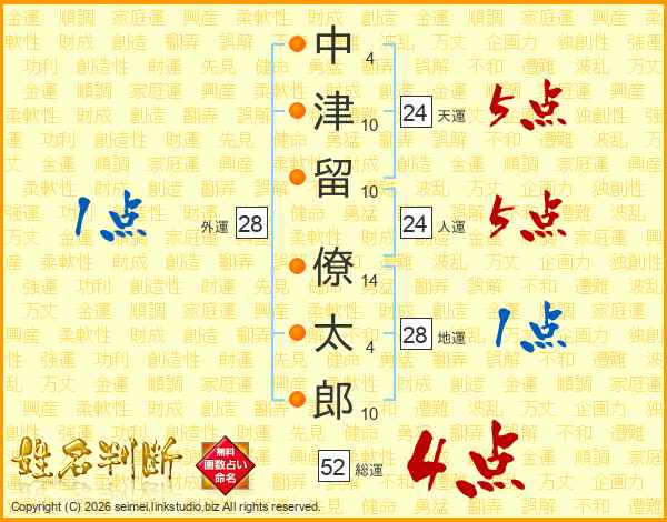 中津留僚太郎さんの総運は52画の4点!
