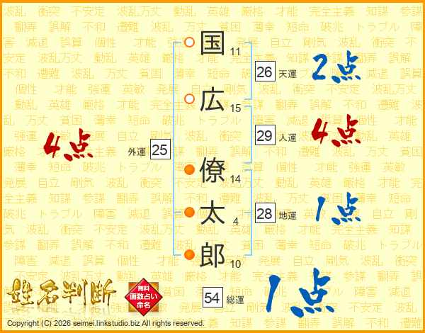 国(11画)広(15画) 僚(14画)太(4画)郎(10画)