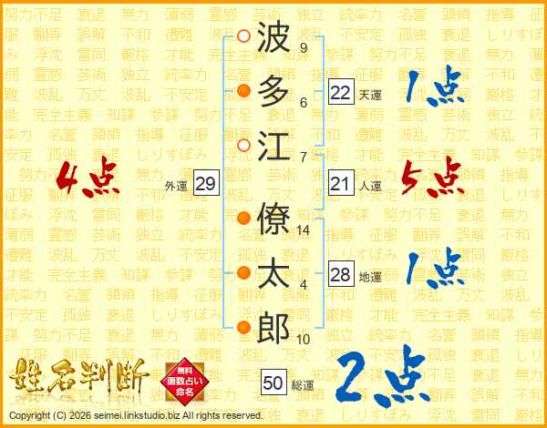 波多江僚太郎さんの人運は21画の5点!