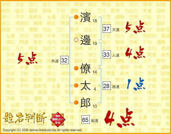 濱邊僚太郎さんの総運は65画の4点!