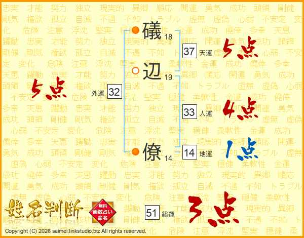 礒辺僚さんの天運は37画の5点!