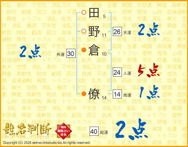 田野倉僚さんの天運は26画の2点!