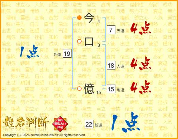 今口億さんの総運は22画の1点!