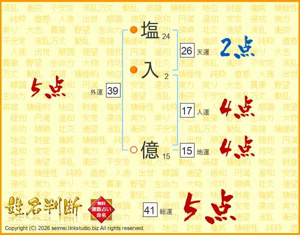 塩(24画)入(2画) 億(15画)