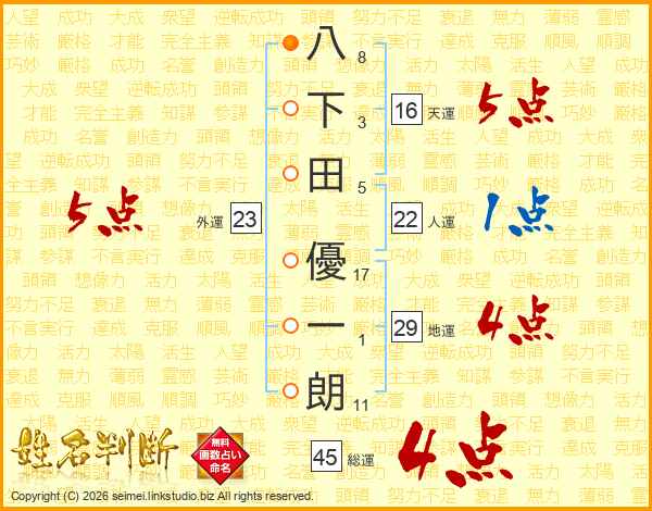 八下田優一朗さんの総運は45画の4点!