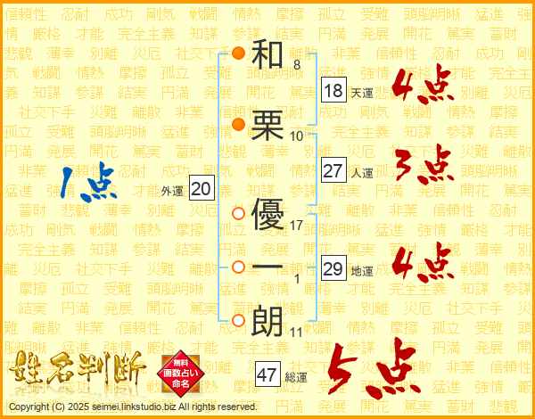 和栗優一朗さんの総運は47画の5点!