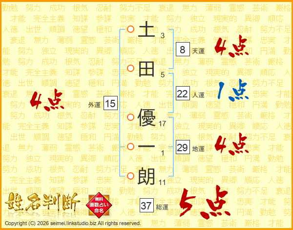 土田優一朗さんの総運は37画の5点!
