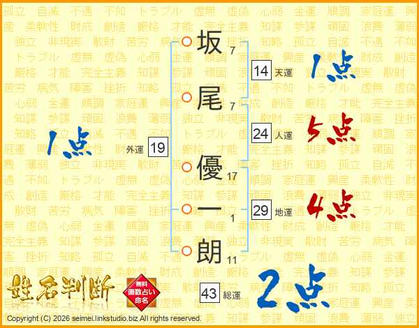 坂尾優一朗さんの人運は24画の5点!