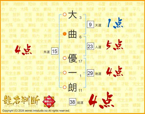 大曲優一朗さんの人運は23画の5点!