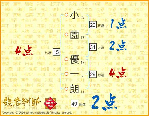 小薗優一朗さんの総運は49画の2点!
