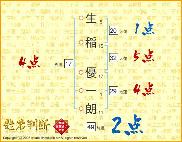 生稲優一朗さんの総運は49画の2点!