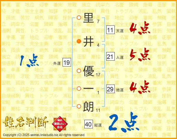 里井優一朗さんの天運は11画の4点!