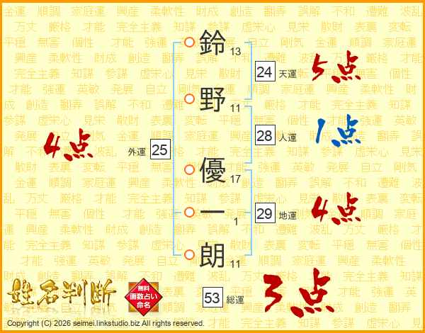 鈴野優一朗さんの総運は53画の3点!