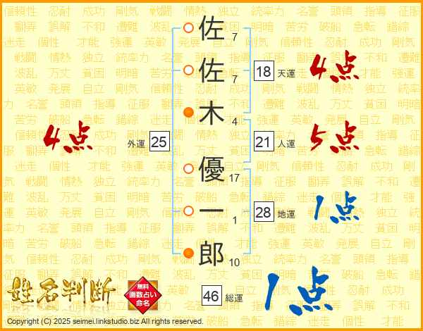 佐(7画)佐(7画)木(4画) 優(17画)一(1画)郎(10画)