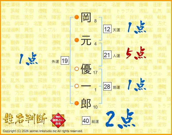 岡元優一郎さんの人運は21画の5点!