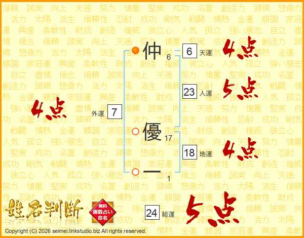 仲優一さんの外運は7画の4点!
