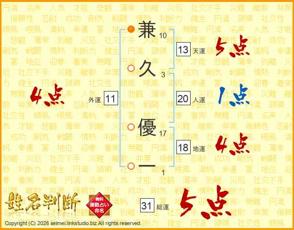 兼久優一さんの総運は31画の5点!