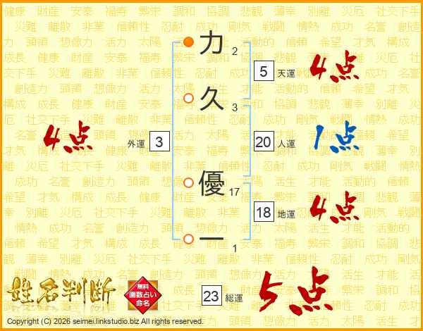 力久優一さんの総運は23画の5点!