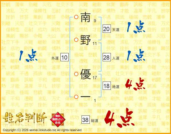 南野優一さんの総運は38画の4点!