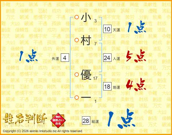 小村優一さんの人運は24画の5点!