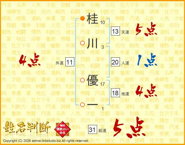 桂川優一さんの総運は31画の5点!
