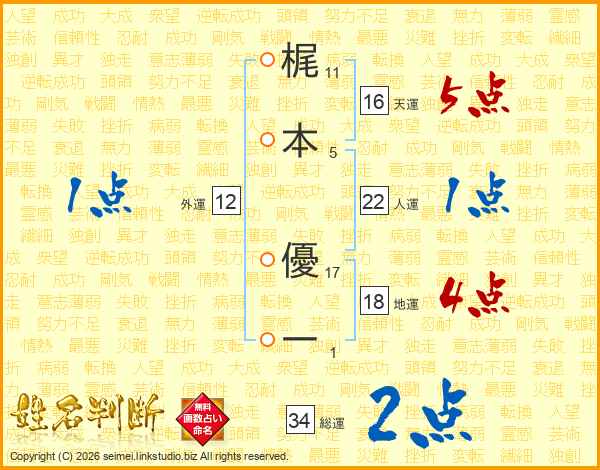 梶本優一さんの天運は16画の5点!