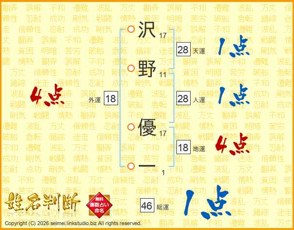 沢野優一さんの外運は18画の4点!
