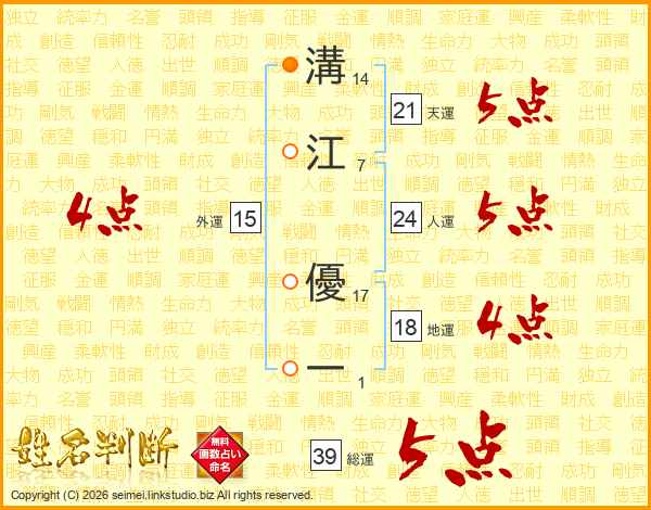 溝江優一さんの総運は39画の5点!