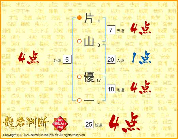 片山優一さんの人運は20画の1点!