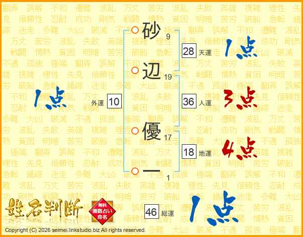砂辺優一さんの総運は46画の1点!