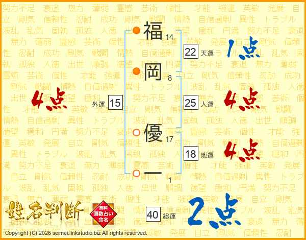 福岡優一さんの人運は25画の4点!