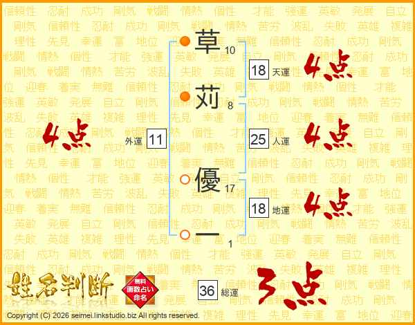 草苅優一さんの人運は25画の4点!