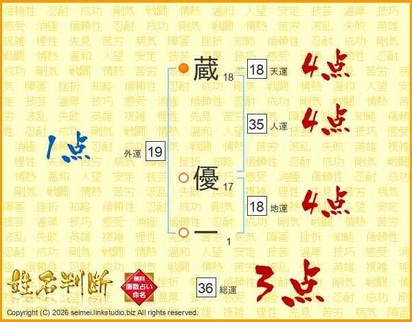 蔵優一さんの総運は36画の3点!