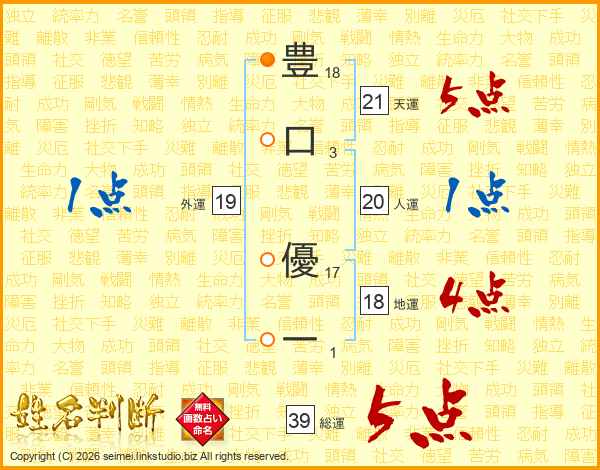 豊口優一さんの総運は39画の5点!