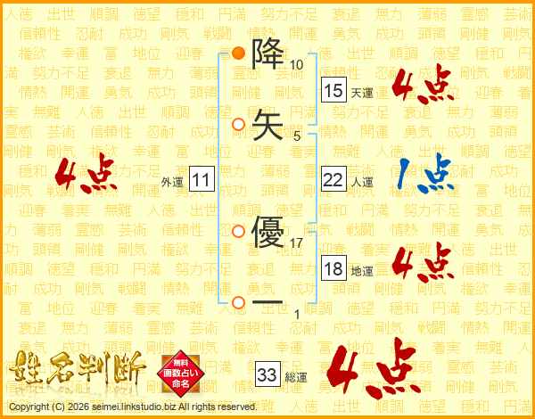 降矢優一さんの総運は33画の4点!