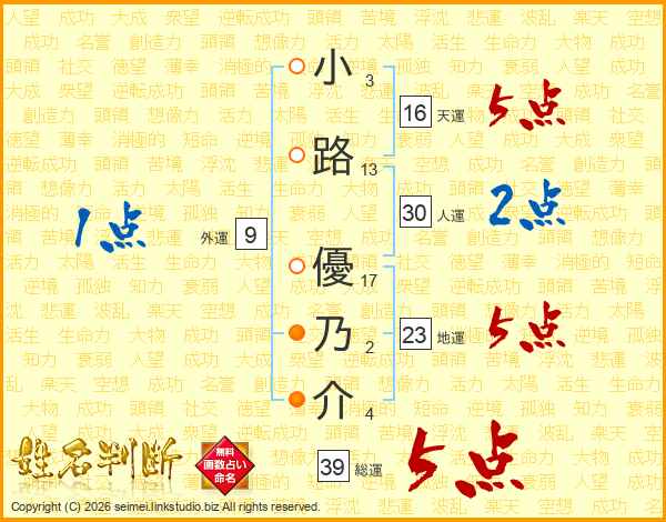 小路優乃介さんの総運は39画の5点!