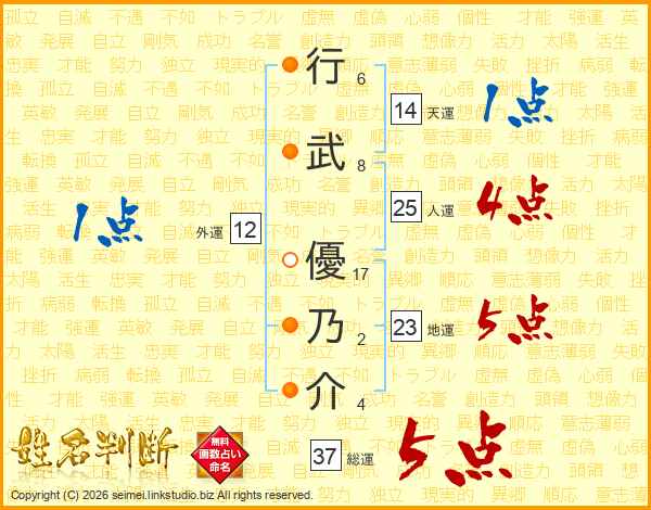 行武優乃介さんの総運は37画の5点!