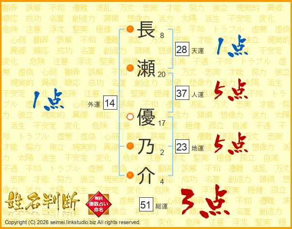 長瀬優乃介さんの総運は51画の3点!