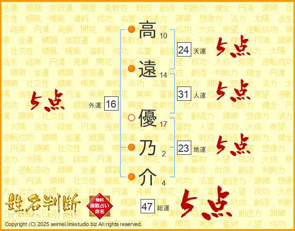 高遠優乃介さんの総運は47画の5点!