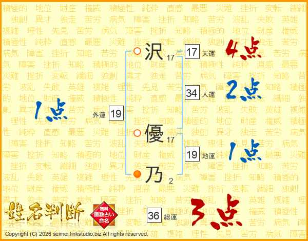 沢優乃さんの天運は17画の4点!