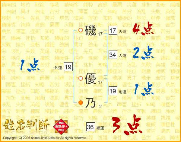磯優乃さんの天運は17画の4点!
