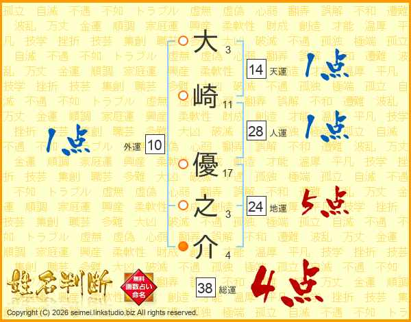 大(3画)崎(11画) 優(17画)之(3画)介(4画)