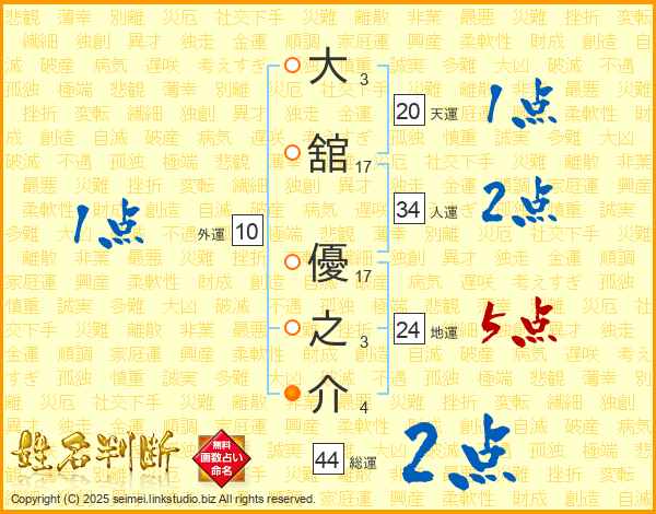大舘優之介さんの総運は44画の2点!