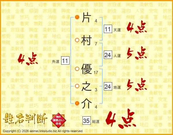 片村優之介さんの総運は35画の4点!
