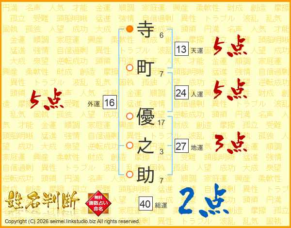寺(6画)町(7画) 優(17画)之(3画)助(7画)