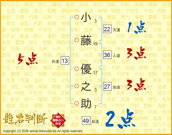 小藤優之助さんの総運は49画の2点!