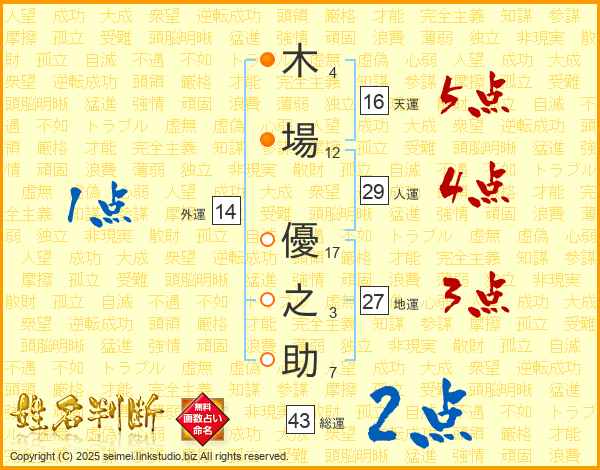 木(4画)場(12画) 優(17画)之(3画)助(7画)