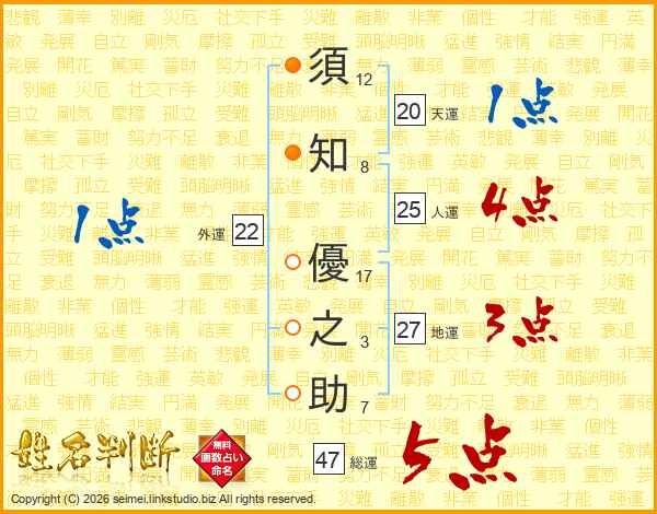 須知優之助さんの総運は47画の5点!